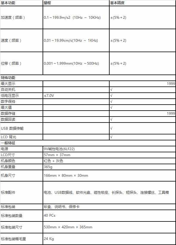 1、品名:测振仪 92 2、订货号:F52Y2W35W92 3、说明:一款专业测振仪。手持式设计,便于携带。采用人工极化压电效应设计而成,适用于机械设备常规振动的测量,特别是旋转和往复机械中的振动测量。